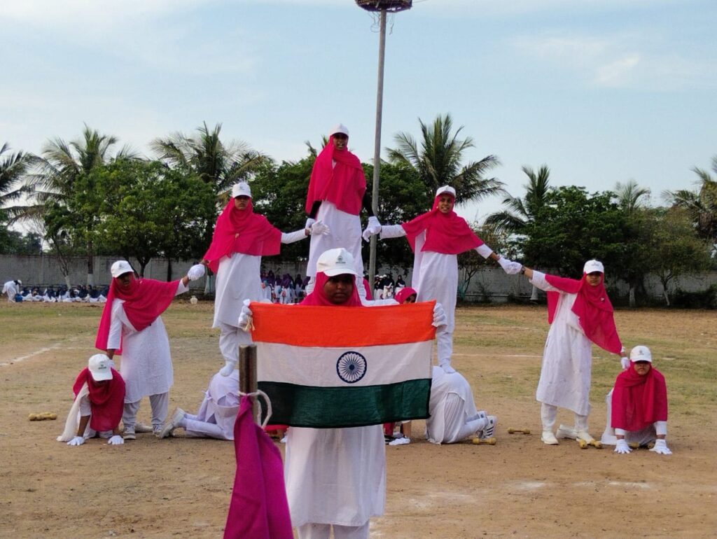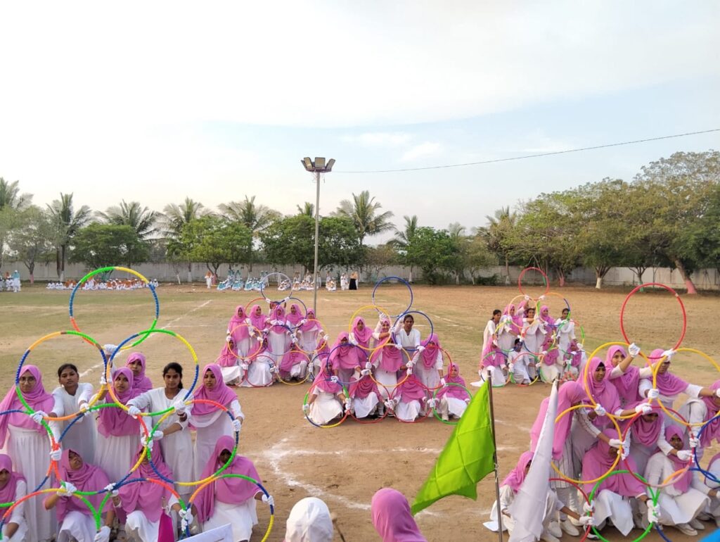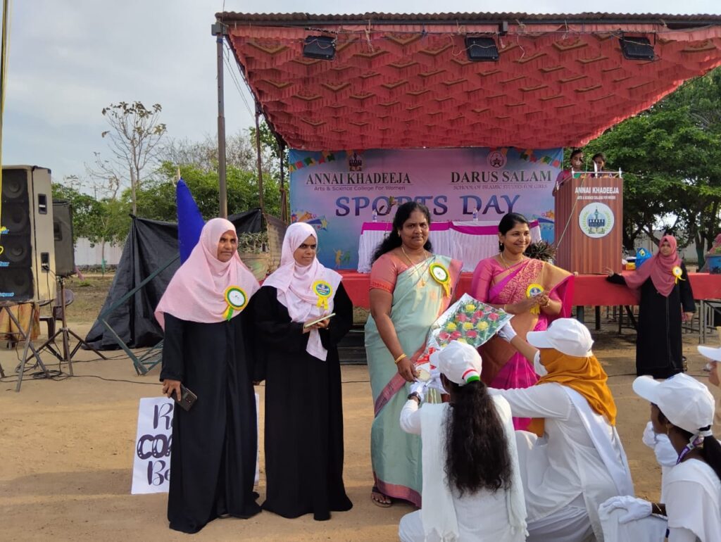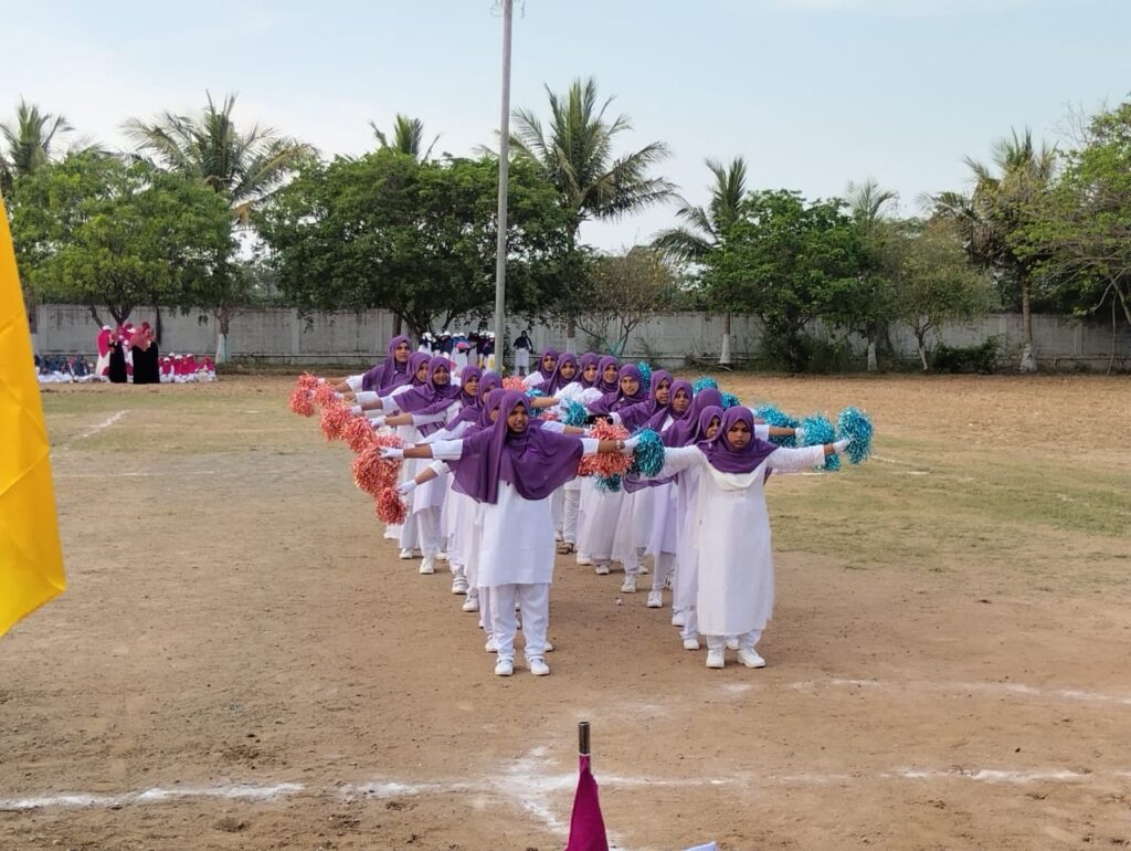 The program began with the recitation of the Quran, followed by Tamil Thai Valthu and the March Past, where students from different departments participated in a disciplined and colorful parade. The teams marched proudly, showcasing unity and coordination. The March Past was followed by an impressive drill performance, which highlighted the students’ synchronization, dedication, and hard work.